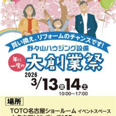 【2026年大創業祭のお知らせ】3/13(金)、3/14(土) 会場は、TOTO名古屋ショールームです。お間違えのないようにお越しください。